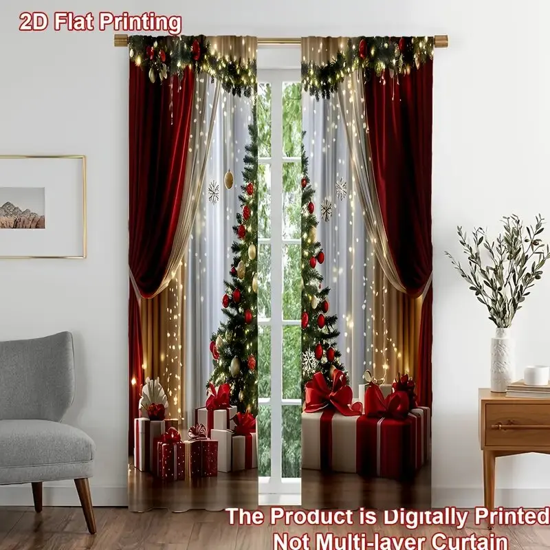2 pieces - Luxurious Christmas tree print curtains, pole bag curtains, home decoration, room decoration、30*65inch