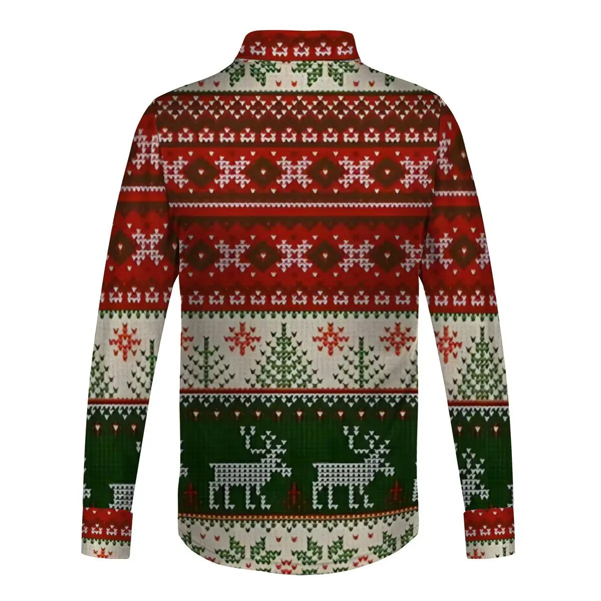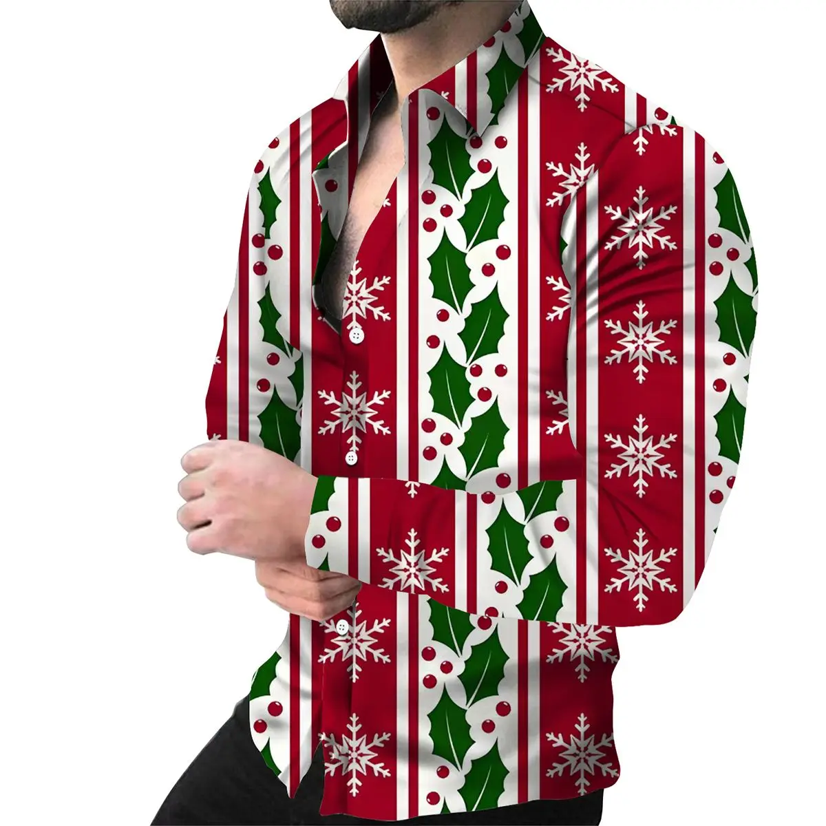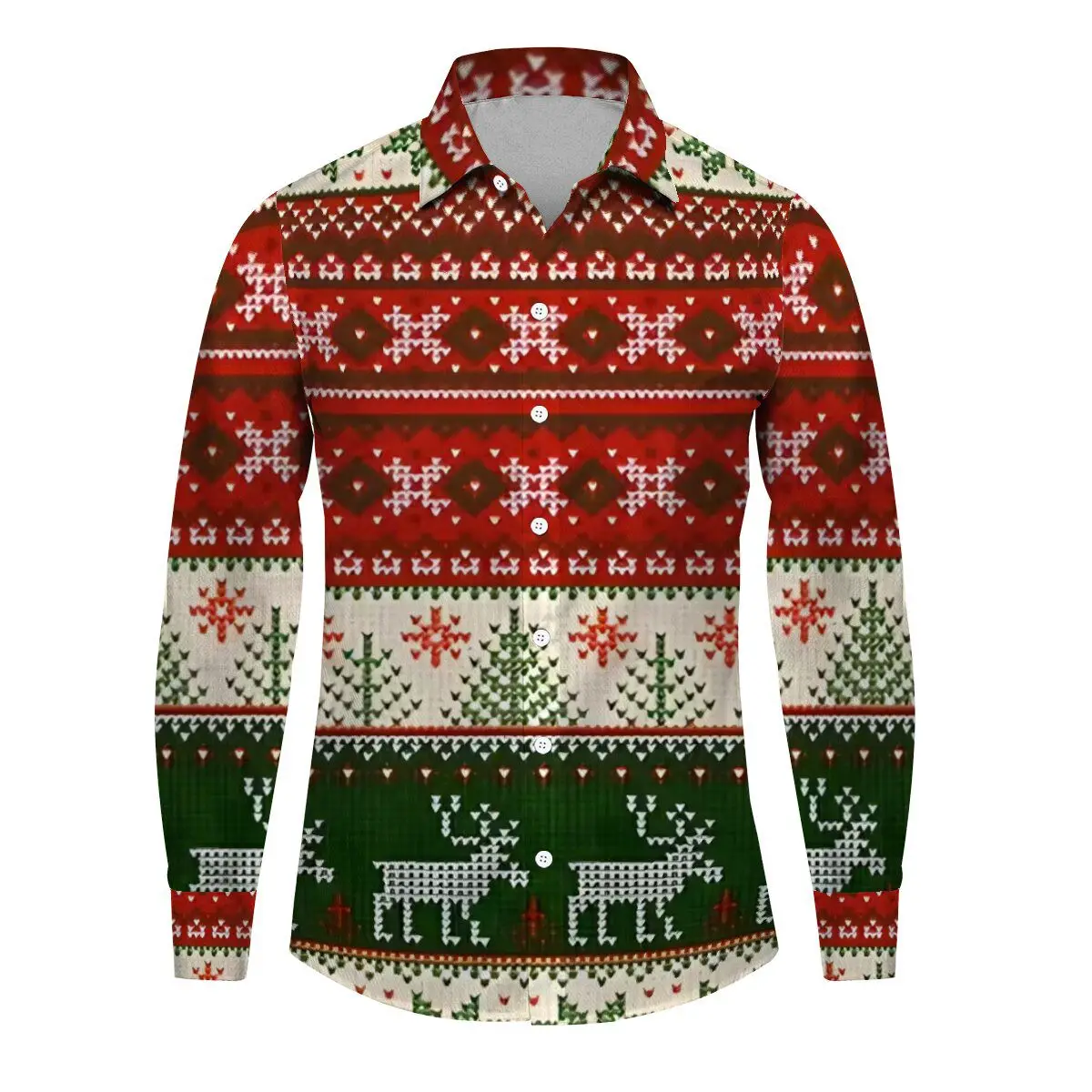 Autumn and Winter Christmas Pattern Printed Men's Long Sleeve Shirt Men's Casual Collar Cardigan Shirt Top Non Stretch Thin