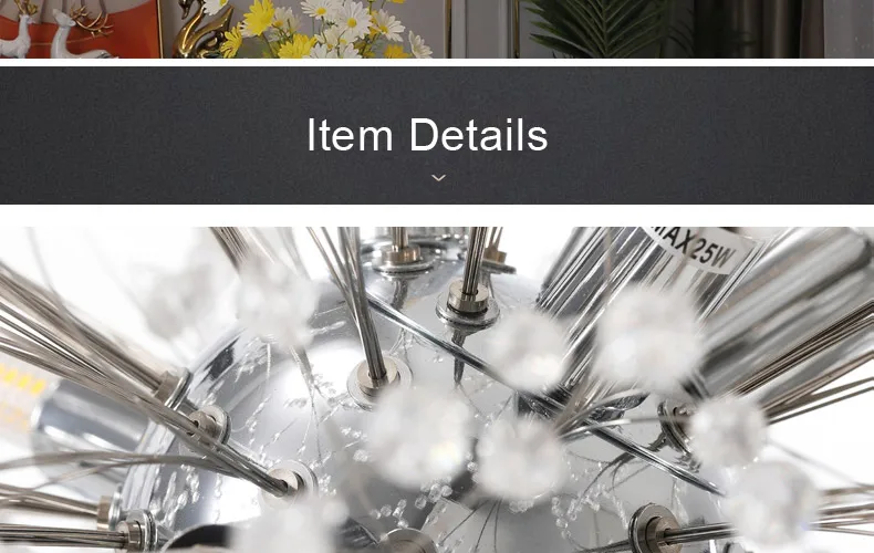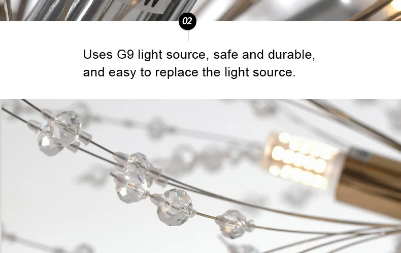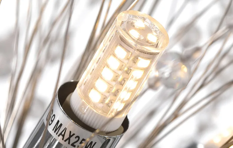 Material: Metal, Crystal Beads, G9 socket, 5 watts LED bulb included