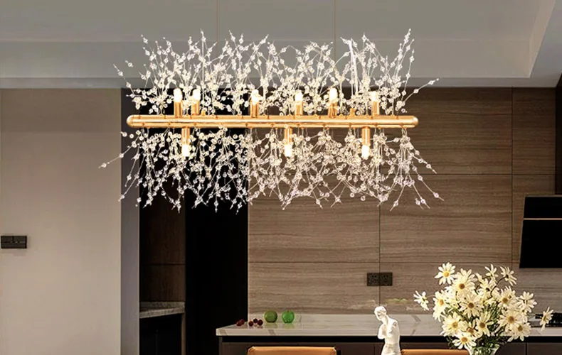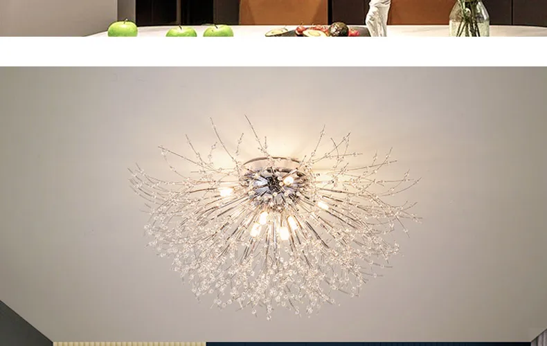 LED Dandelion Pendant Light Modern Crystal Beads Hanging Light Dining Room Living Room Bar Counter Home Decoration G9