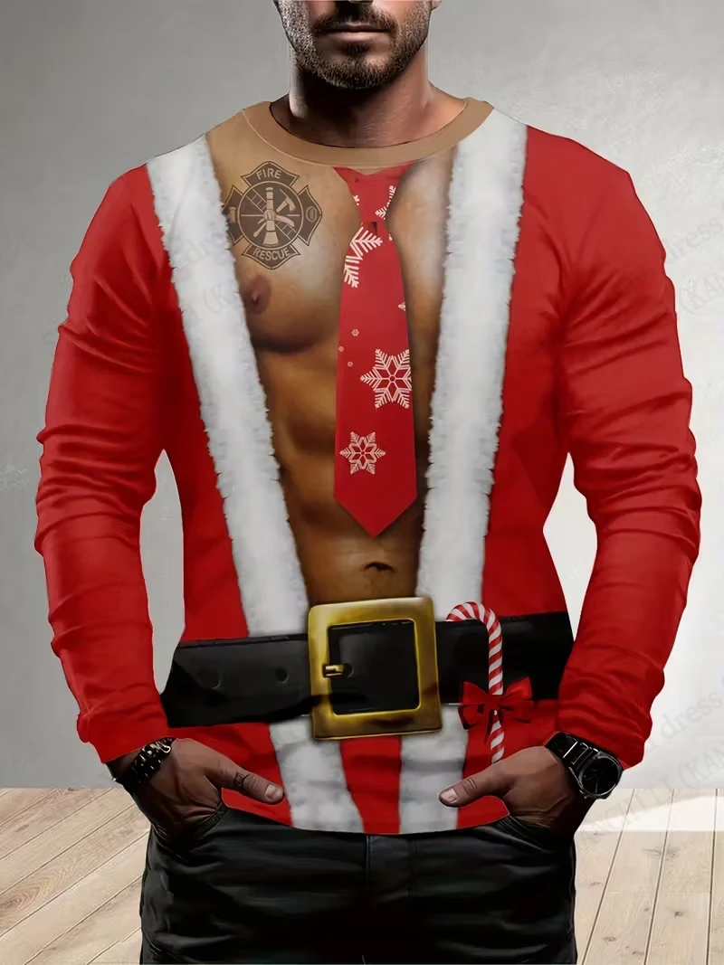 Merry Christmas Santa Claus 3d Print Graphic T-shirt Men Women Fashion Long Sleeve T-shirts Christmas Tree Tops Tees Gift New