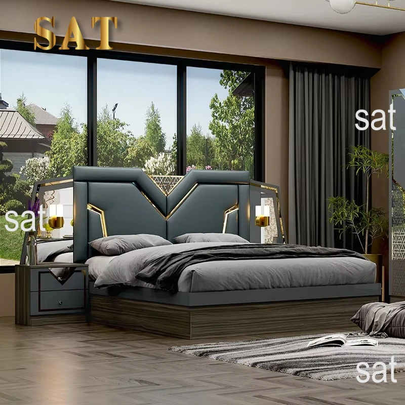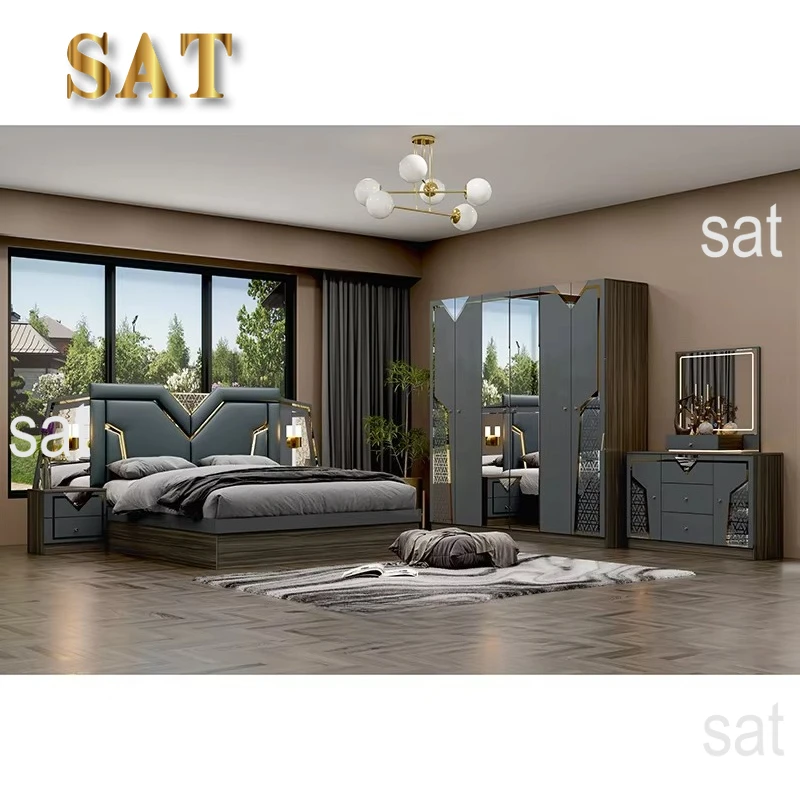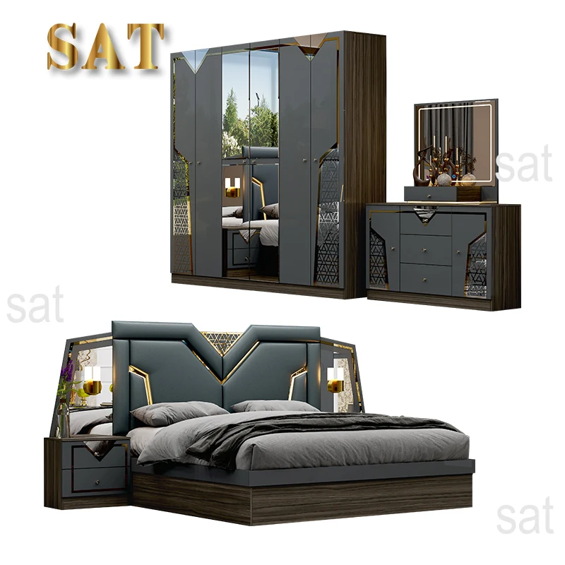 Keyword: Modern luxury wooden bedroom furniture set